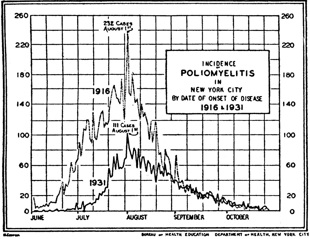 Polio outbreaks peaked every summer—just as lead arsenate, a potent neurotoxic pesticide, was sprayed across American farmland. Symptoms of arsenic poisoning—nausea, paralysis, muscle weakness—closely mimic those of polio. Reports from the time even noted similar paralytic illness in domestic animals and negligible person-to-person transmission in households and lab experiments.